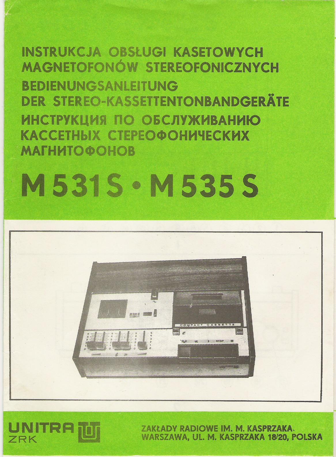 Magnetofony typu ,,M-531S" i ,,M-535S", klasy popularnej, stanowi jedną rodzinę sprzętu o zbliżonych właściwościach użytkowych i nieznacznie zróżnicowanej konstrukcji. Zasadnicza różnica między nimi polega na wyposażeniu wersji M531S w licznik przesuwu taśmy.