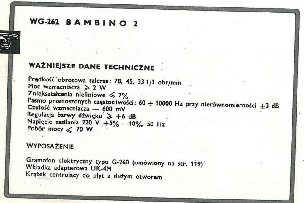 Bambino 2 (WG-262) jest kolejną wersją popularnego polskiego gramofonu Bambino (bez numerka).