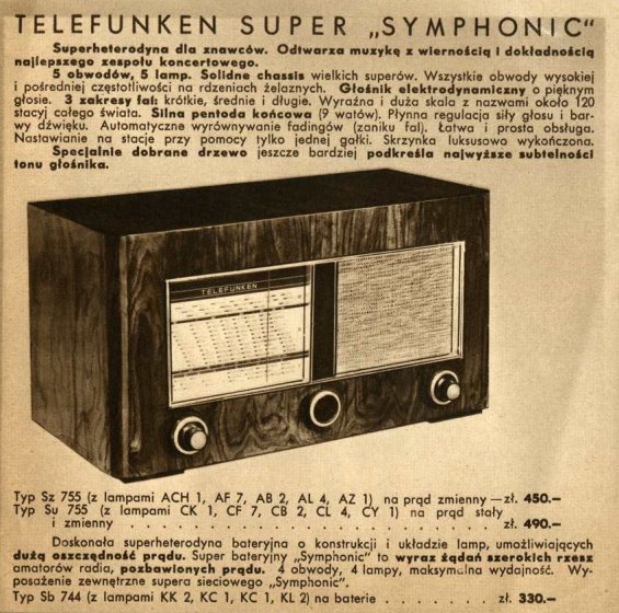 Superheterodyna 4-obwodowa z ARW. Regulacja barwy tonu, głośnik dynamiczny, skrzynka orzechowa. Cena 330zł