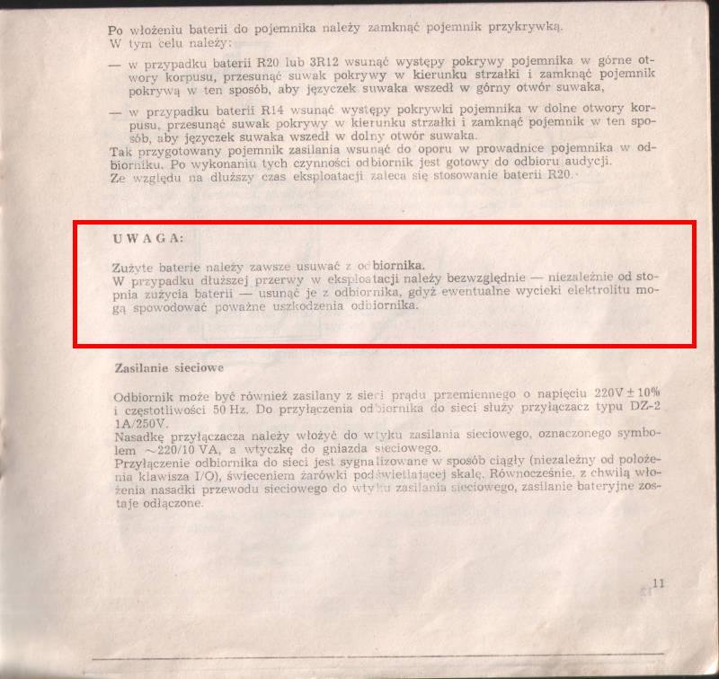Tekst z instrukcji obsługi: