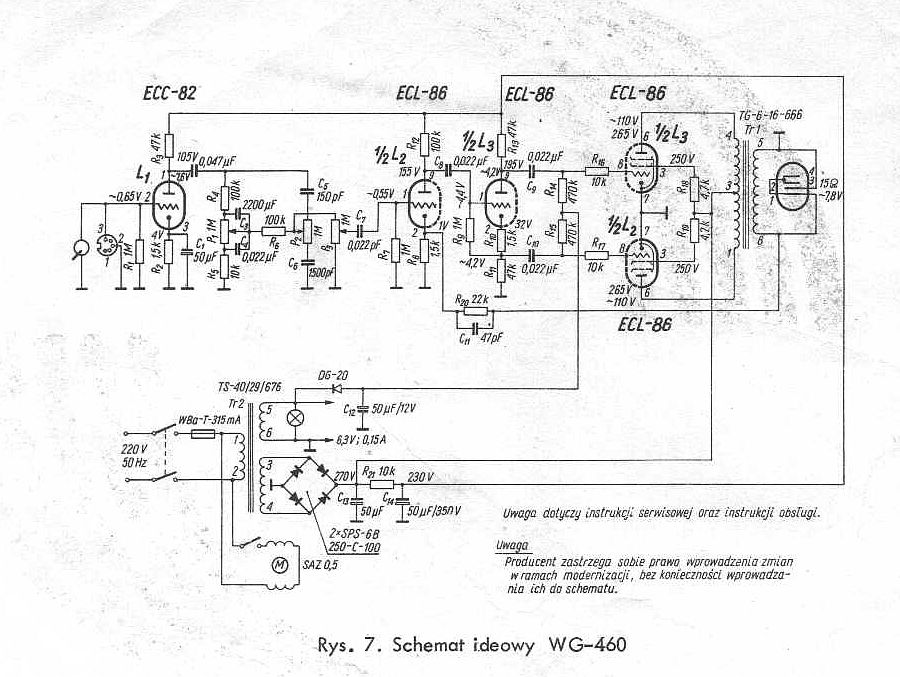 Wzmacniacz lampowy w układzie przeciwsobnym, zabudowany na blaszanej podstawie montażowej, stanowiącej jednocześnie spód zestawu. W stopniu wstępnym wykorzystana jest jedynie połowa lampy ECC82. Ponadto zastosowano elementy półprzewodnikowe - diodę DG20 i selenowy stos prostowniczy SPS-6B/1. Transformator głośnikowy TG 6-16-666.