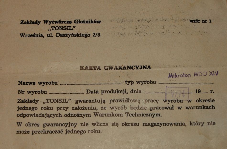 Przedstawiony egzemplarz mikrofonu wyprodukowany został w maju 1974 roku