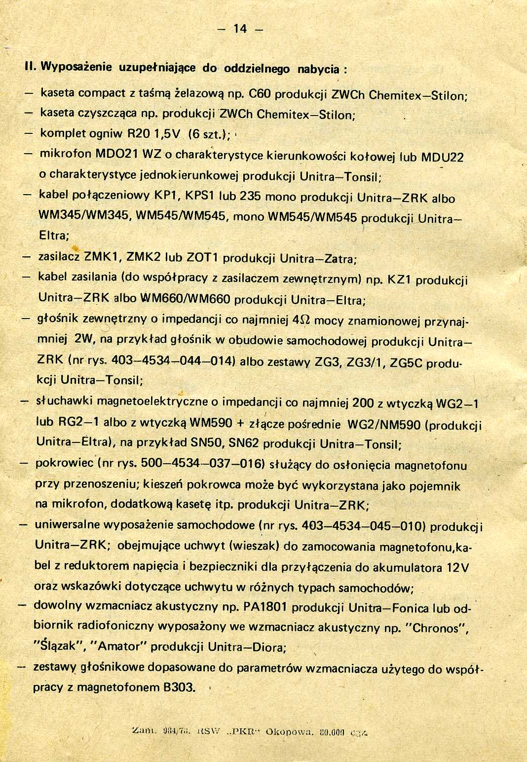 Magnetofon B 303 był popularnym, przenośnym magnetofonem kasetowym, przystosowanym do zasilania z baterii, akumulatora samochodowego lub z sieci. Był on zmodernizowaną wersją modelu B 302. Zastosowano w nim między innymi nowoczesny, wysokiej jakości układ automatycznej regulacji wzmocnienia przy zapisie, regulację barwy dźwięku dla tonów wysokich, polepszono również parametry, wprowadzono zmiany w układzie elektrycznym umożliwiające pracę magnetofonu jako deck monofoniczny.