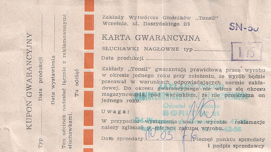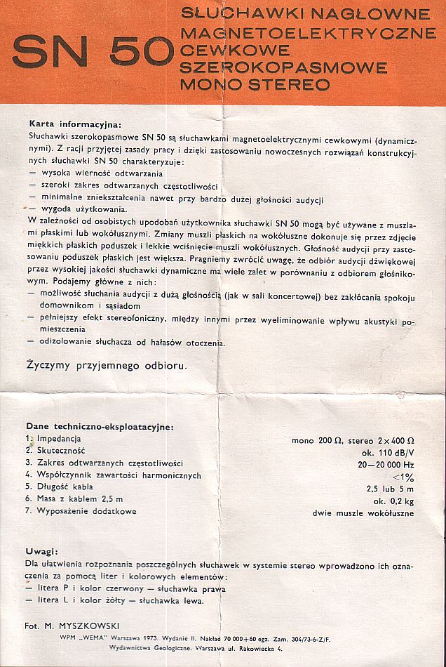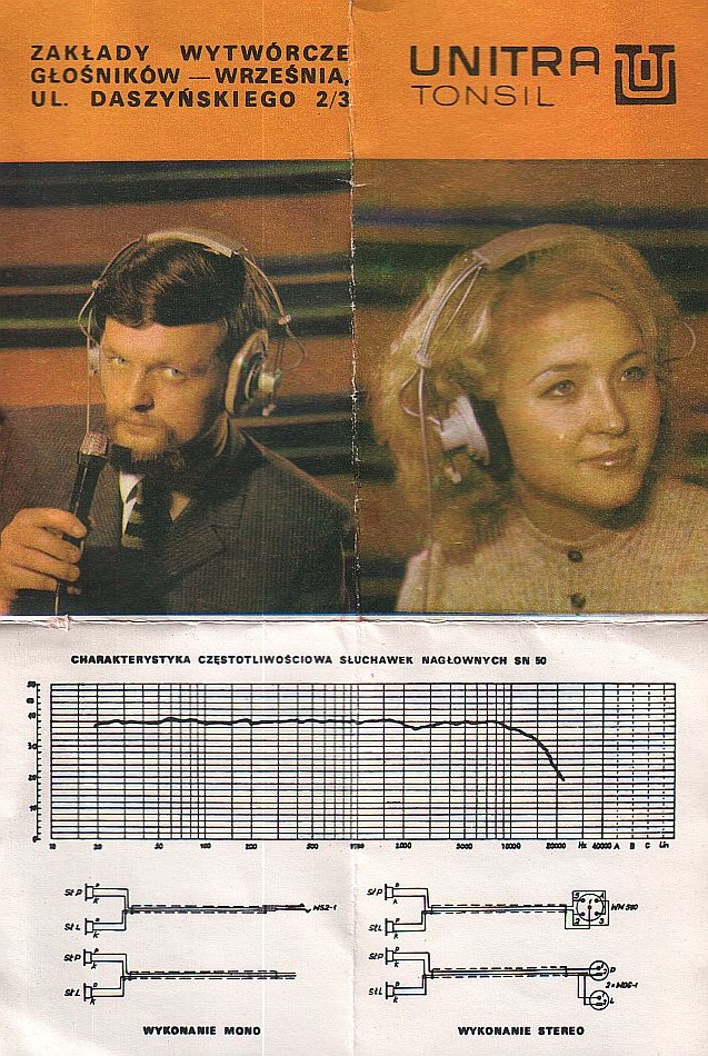 Słuchawki szerokopasmowe SN 50 są słuchawkami magnetoelektrycznymi cewkowymi (dynamicznymi).