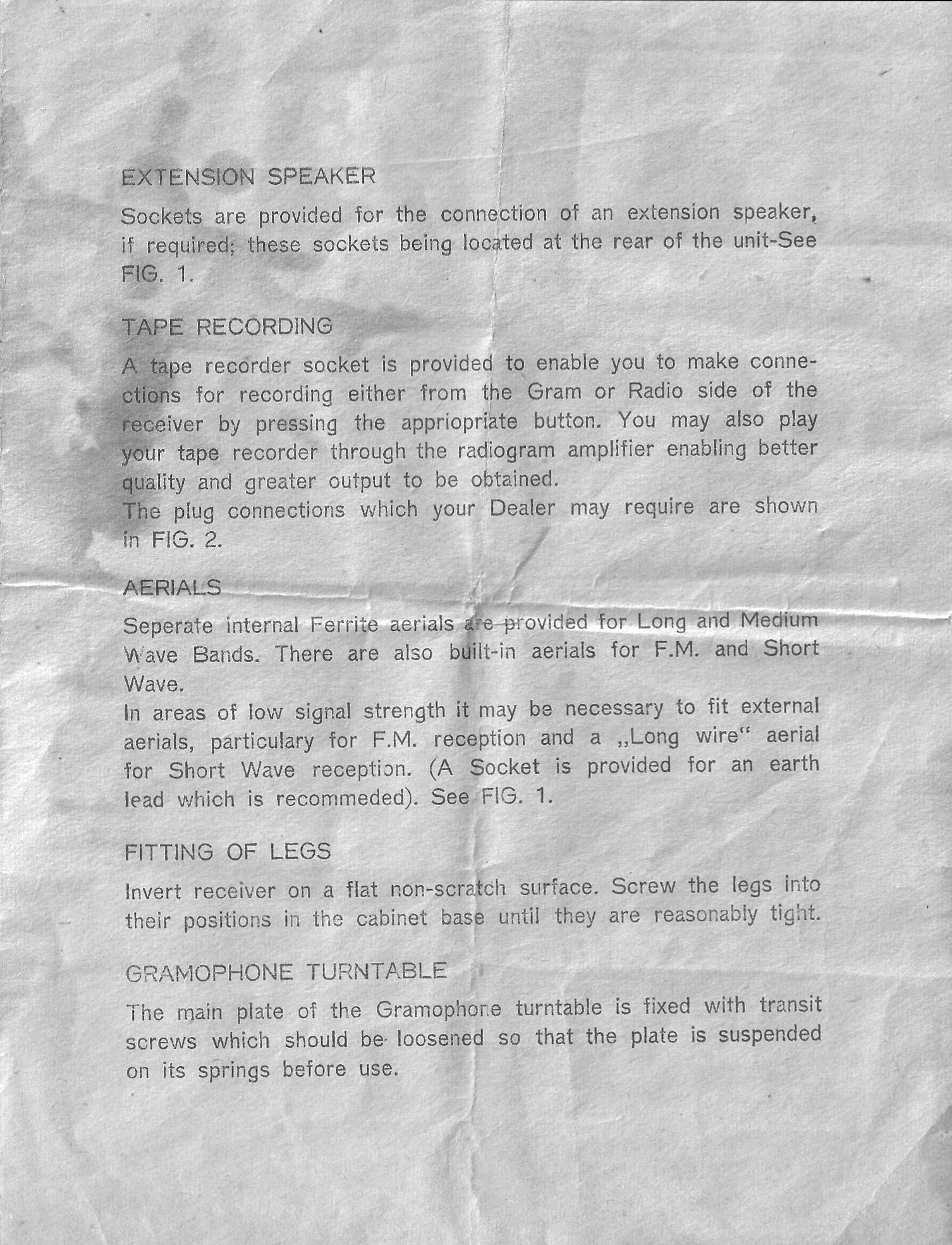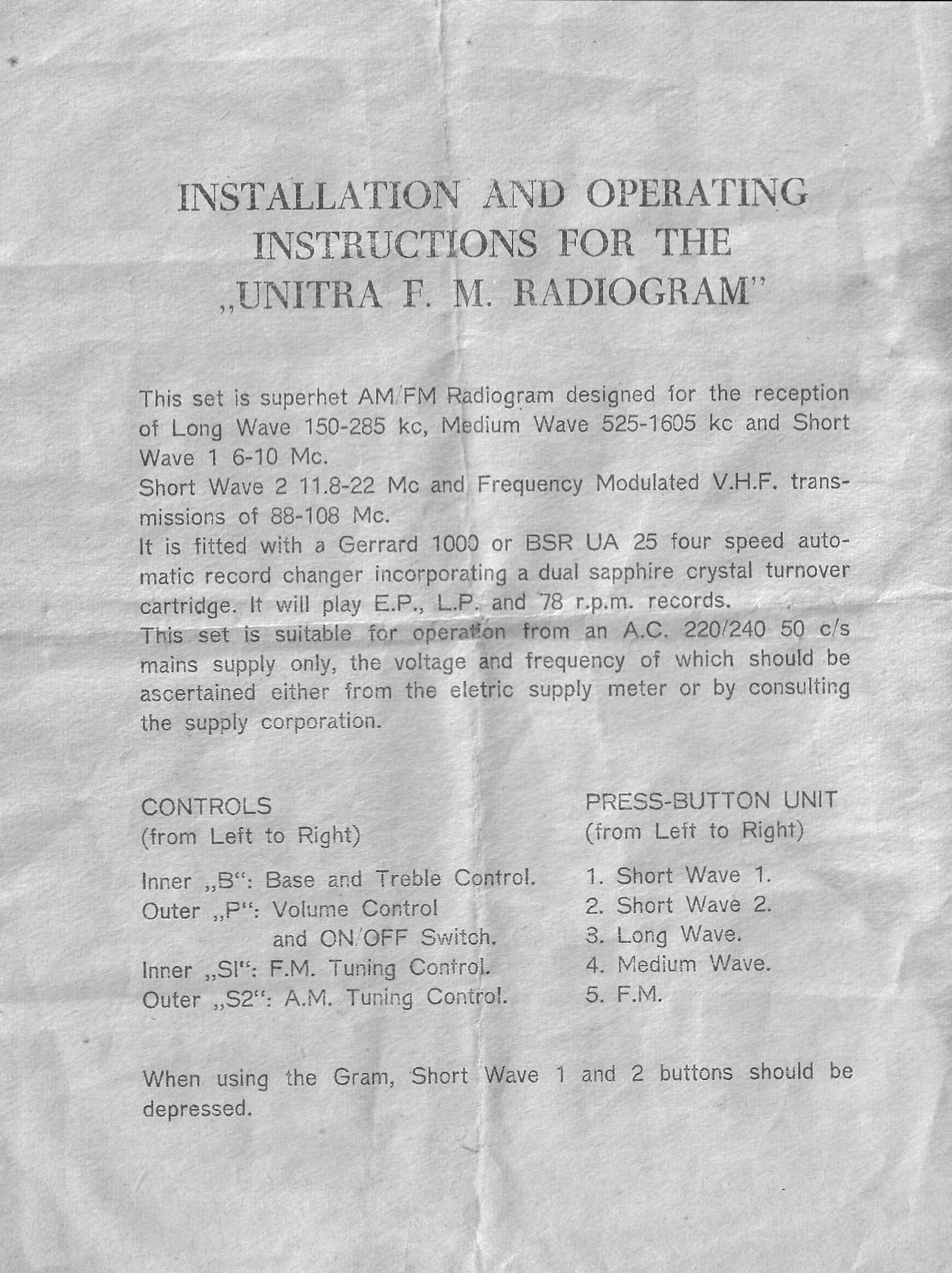 Zastosowano układ radioodbiornika Relaks z głowicą UKF CCIR produkcji Philips oraz przemodelowaną skalą. Gramofon montowano w Wlk. Brytanii zazwyczaj marki Garrard 1025 lub Monarch ze zmieniarkami. Skrzynka z płyty wiórowej fornirowanej z wkręcanymi nogami. Opcjonalna półka montowana w niektórych egzemplarzach. Maskownica głośnika podzielona na trzy segmenty, głośnik znajduje się obok skali. Przyciski i pokrętła szare z niklowanymi pierścieniami.