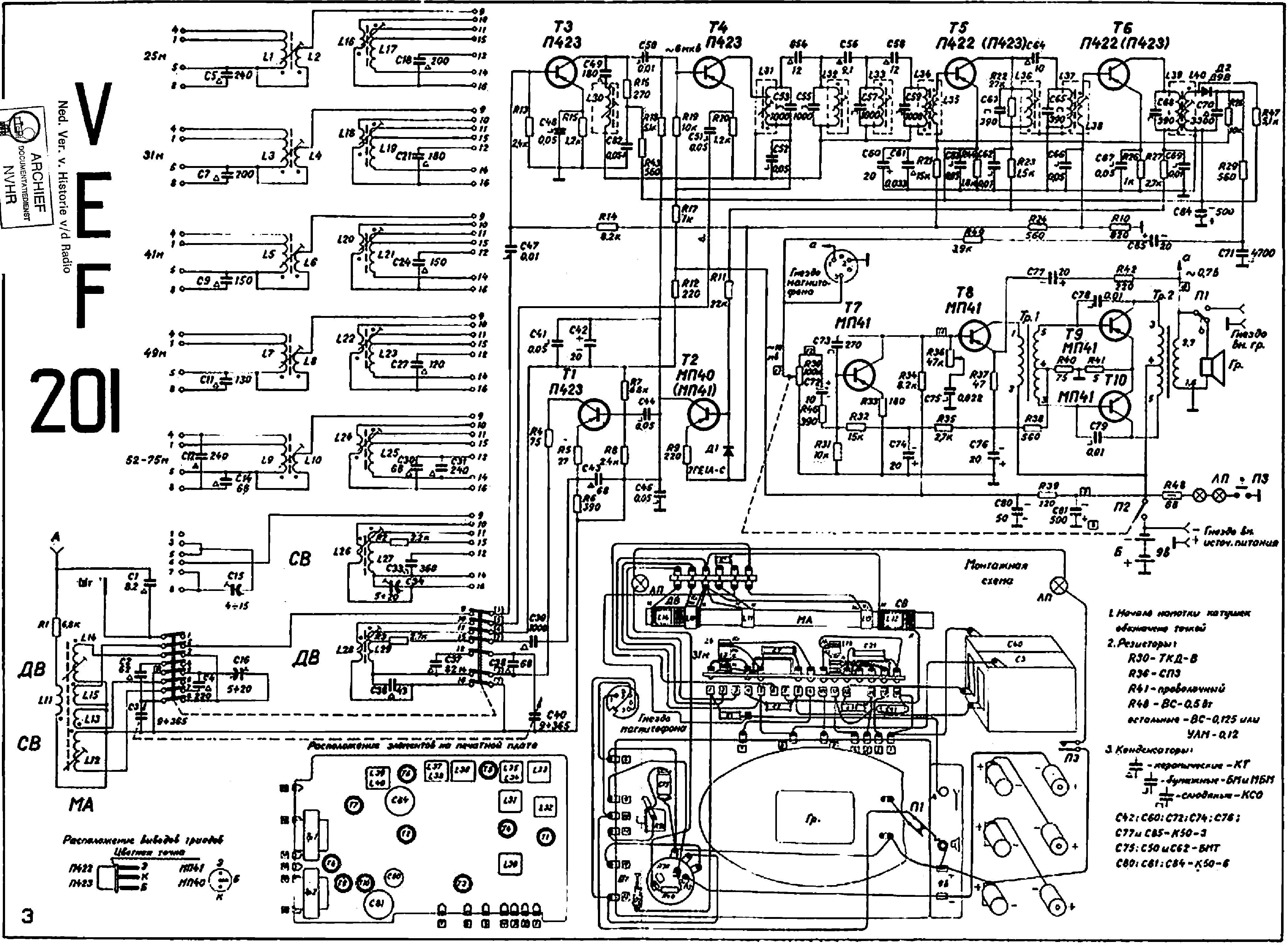 Radio VEF-201 jest przeznaczone do odbioru sygnałów ze stacji nadawczych w pasmach długich, średnich i krótkich.
