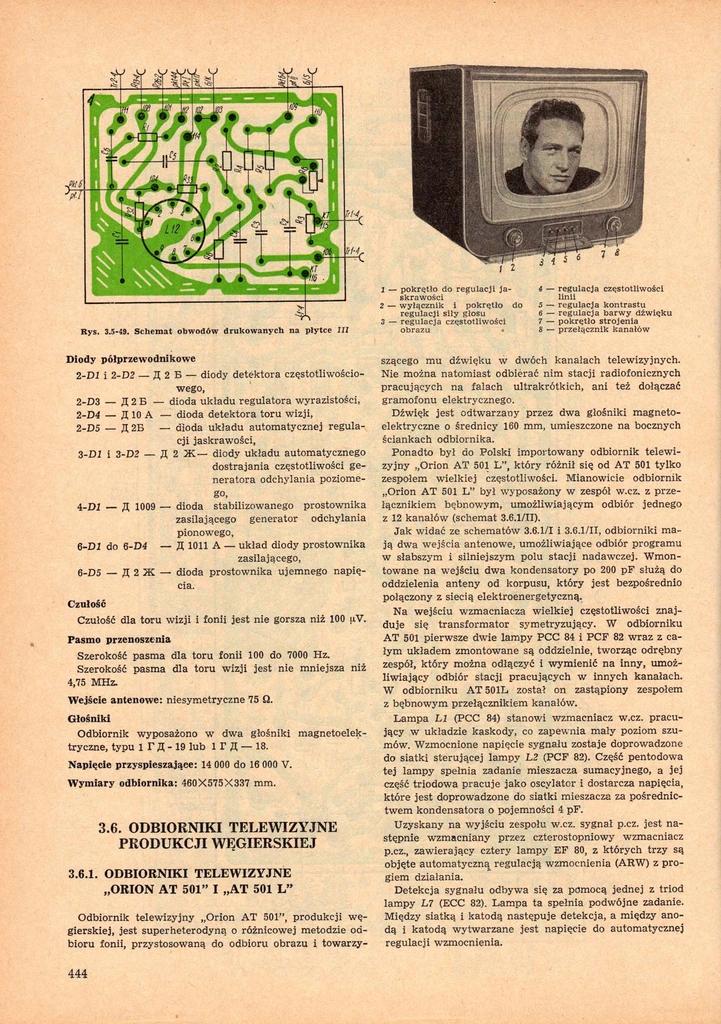 Superhetrodyna o różnicowej metodzie odbioru fonii. Na rynku węgierskim odbierał tylko dwa kanały. Do Polski importowany było model AT 501 L, w którym zastosowano przełącznik 12-kanałowy. Czterostopniowy stopień p.cz. miał szczególnie duże wzmocnienie, aby zrekompensować słaby sygnał sieci nadajników w tym czasie.