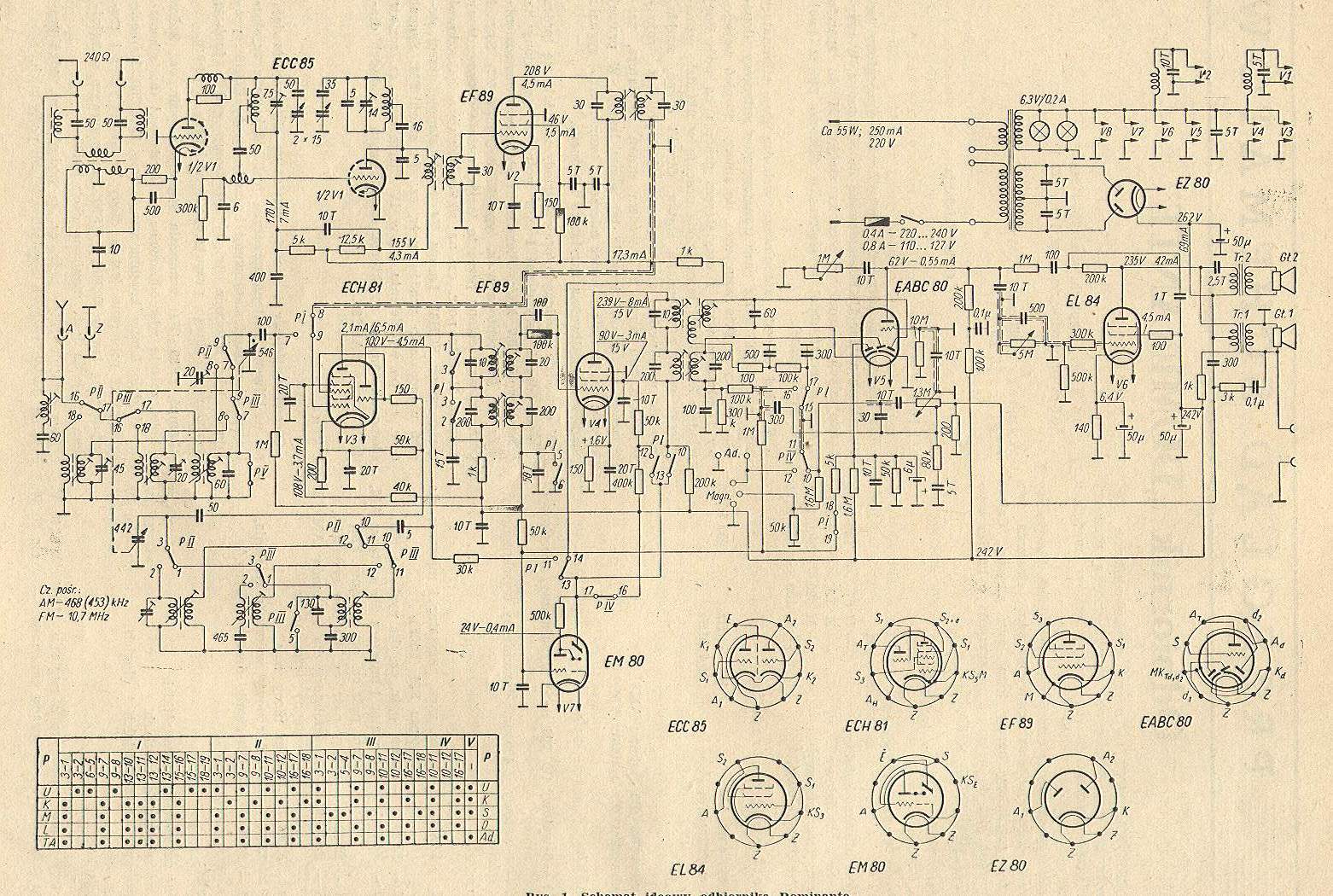 ECC85,ECH81,2xEF89,EABC80, EL84,EZ80,EM80