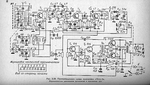 Produkowana w dawnym Leningradzie. Zasilanie 9V, moc wyjściowa 50 mW. Schemat i opis w RA-3/66.