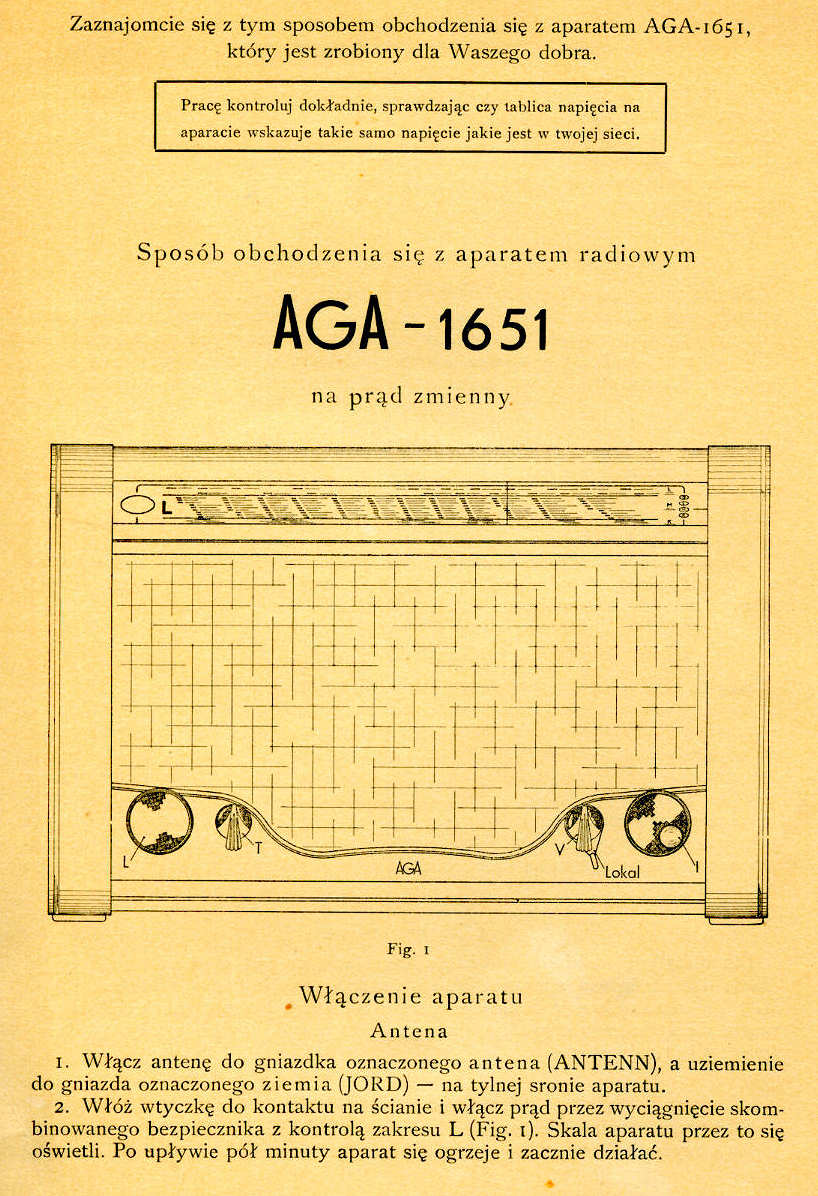 Odbiorniki typu "Aga" były w pierwszych, powojennych latach sprowadzane ze Szwecji a następnie ich produkcję podjęto w kraju. Do najczęściej spotykanych odbiorników z importu należały "Aga-1742" (uniwersalna) i "Aga-1651" (na prąd zmienny). Skrzynki obu modeli były jednakowe.