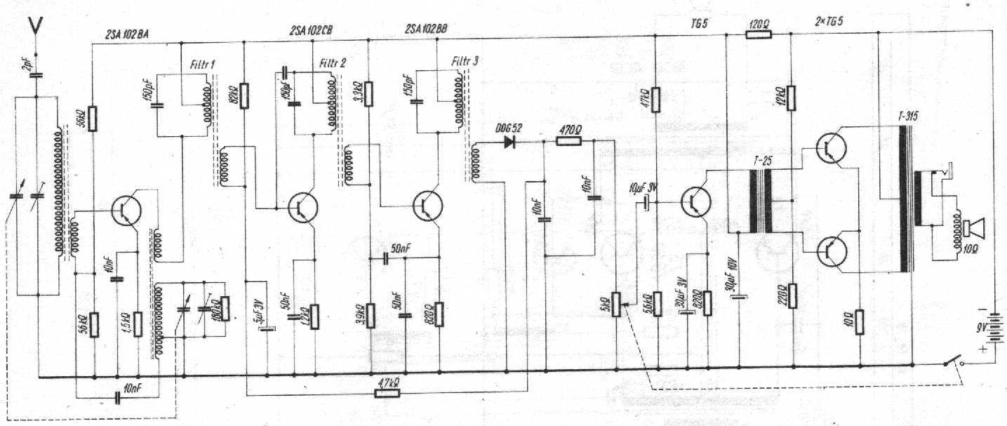 Montaż na druku. 3 tranzystory importowane 2SA102 i 3 polskie TG5. Wzmacniacz przeciwsobny. Zasilanie 9V. Antena ferrytowa. Zaprezentowany w lutym 1961 r. na I Krajowej Wystawie Podzespołów Radiowych w Warszawie. Pierwsza partia miała się znaleźć na Targach Poznańskich 61 w cenie 1100zł. Wzmianka w RA-4/61/s.132, schemat i opis w RA-5/63,s.145. Jak dorobić do Migo zakres Dł - opisano w RA-4/64/s.104.