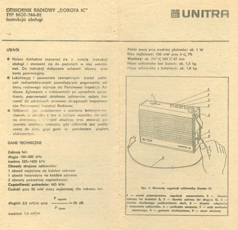 MOT 744 z Eltry. Ostatni polski odbiornik przenośny z zakresami tylko fal długich i średnich - odbiorniki z zakresem UKF były produkowane już 10 lat wcześniej.