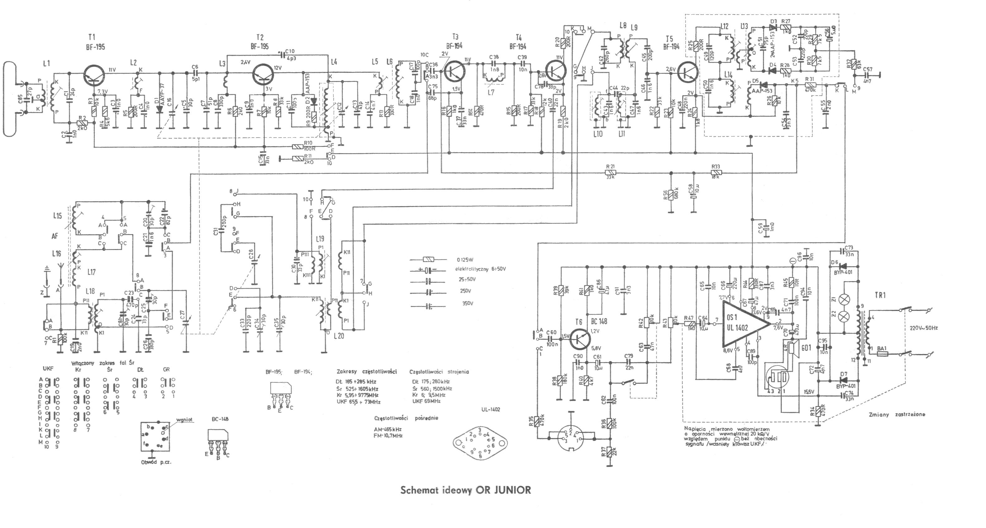 Kontynuacja zainicjowanej przez Jubilata DMT 406 linii tanich, domowych odbiorników pełnozakresowych ze wzmacniaczem mocy na układzie scalonym. Płyta drukowana 2217-230-2 identyczne, jak w Jubilacie i Contessie. Gniazdo głośnika zewnętrznego zamocowane poza płytą na dodatkowym kątowniku obok przewodu zasilającego. W odróżnieniu od wymienionych modeli, tutaj tylna ścianka nie jest plastikowa lecz z płyty pilśniowej. Inaczej przebiega też demontaż odbiornika. Płyta i chassis nie są zespolone ze ścianką czołową. Tutaj, żeby wyjąć chassis, trzeba zdjąć gałki z pokręteł i wysunąć chassis do tyłu. W Jubilacie i podobnych trzeba było odkręcić 6 głęboko ukrytych śrubek z łbem sześciokątnym i wysunąć chassis wraz z płytą czołową do przodu. Stylistyka Juniora nieco odbiega od innych odbiorników: obudowa (zazwyczaj pokryta fornirem) ma dwie boczne ścianki wystające nieco poza obrys obudowy a przyciski przełącznika zakresów są kwadratowe.