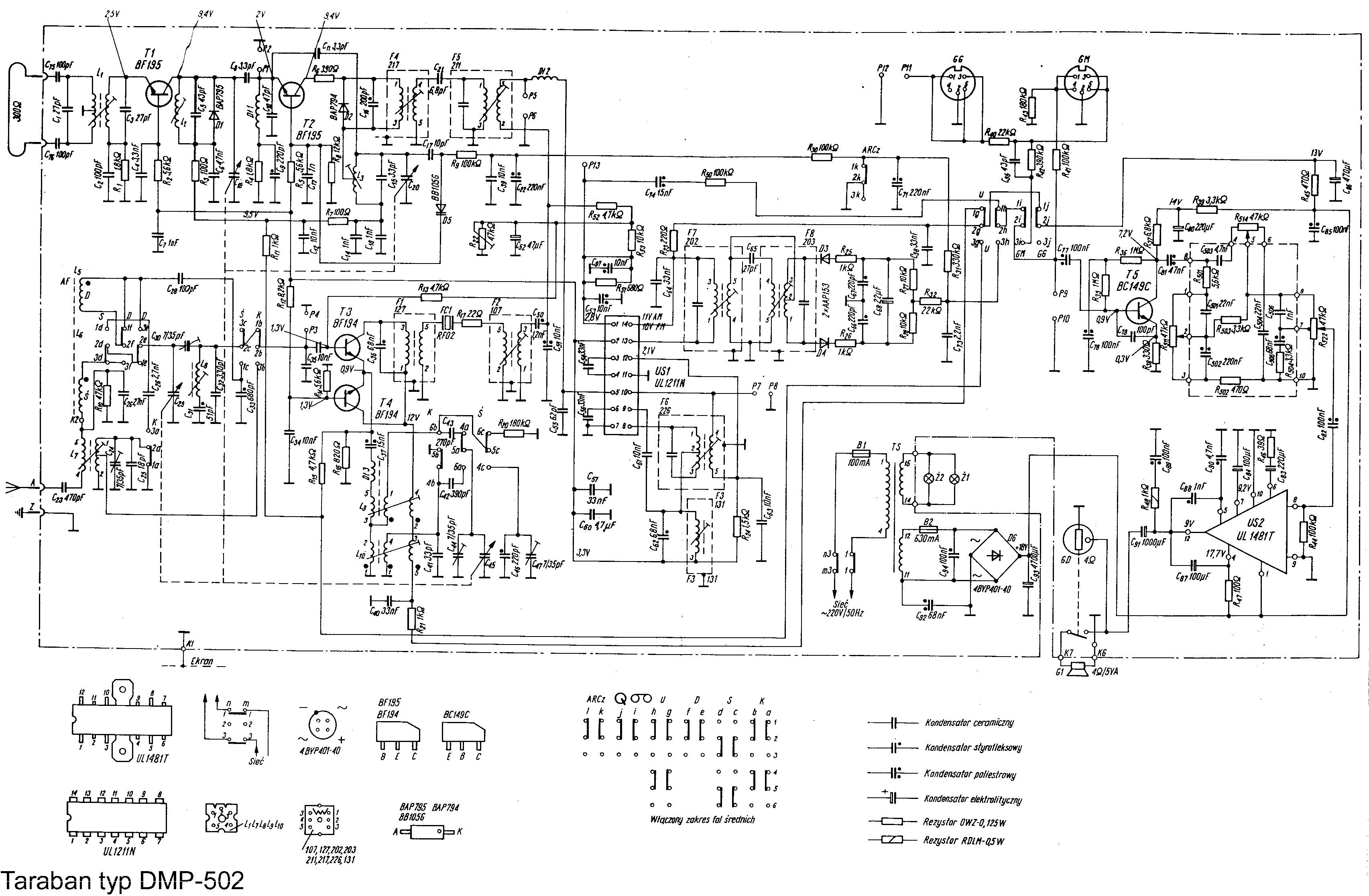 Monofoniczny odbiornik domowy o podwyższonych parametrach użytkowych. Regulacja barwy dźwieku dla tonów wysokich i niskich. Szeroka, dobrze oświetlona skala. Wzmacniacz 3,5W i głośnik 5W. Na falach Kr pasma 31, 41 i 49 m, UKF OIRT 66,6-73MHz. Identyczny układ elektryczny miał Taraban-2 DMP 602, róznica tylko w wyglądzie obudowy. Wzmianka w RE-2/79.