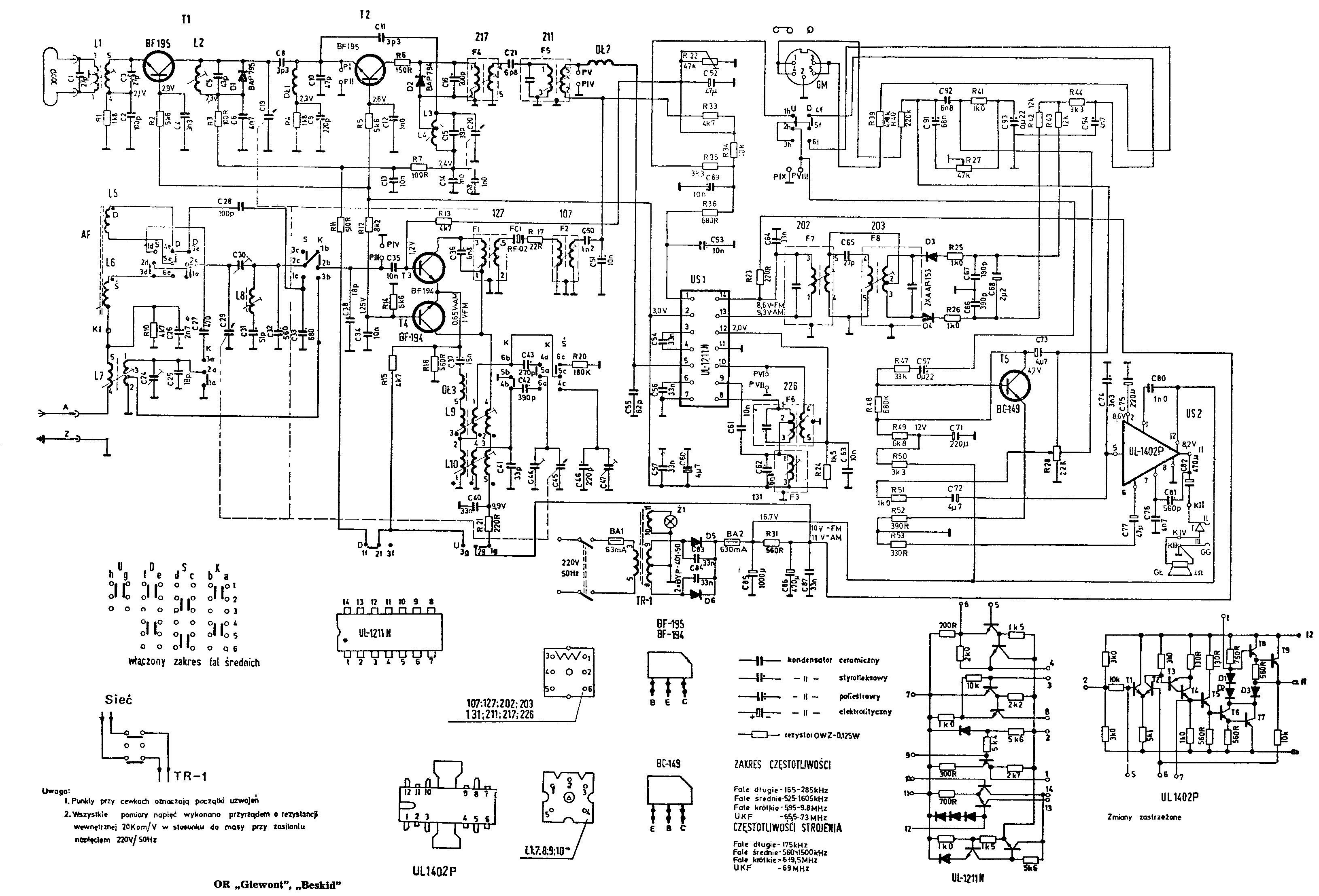 W układzie elektrycznym zastosowano układy scalone: UL1402P w obudowie typu CE74 i UL1211. Spotyka się też tranzystory 2xBF195, 2xBF194 w metalowych kubkach. Na falach Kr pasma 31, 41 i 49 m, UKF OIRT 66,6-73MHz. Produkowany do połowy lat 80. XX w.