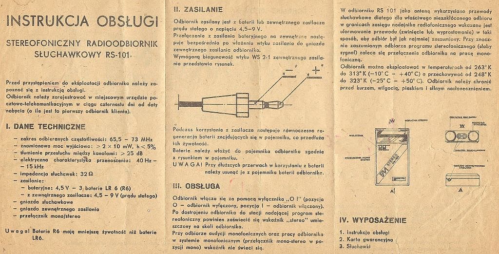 Odbiornik kieszonkowy typu "walkman" z odbiorem przy pomocy słuchawek.