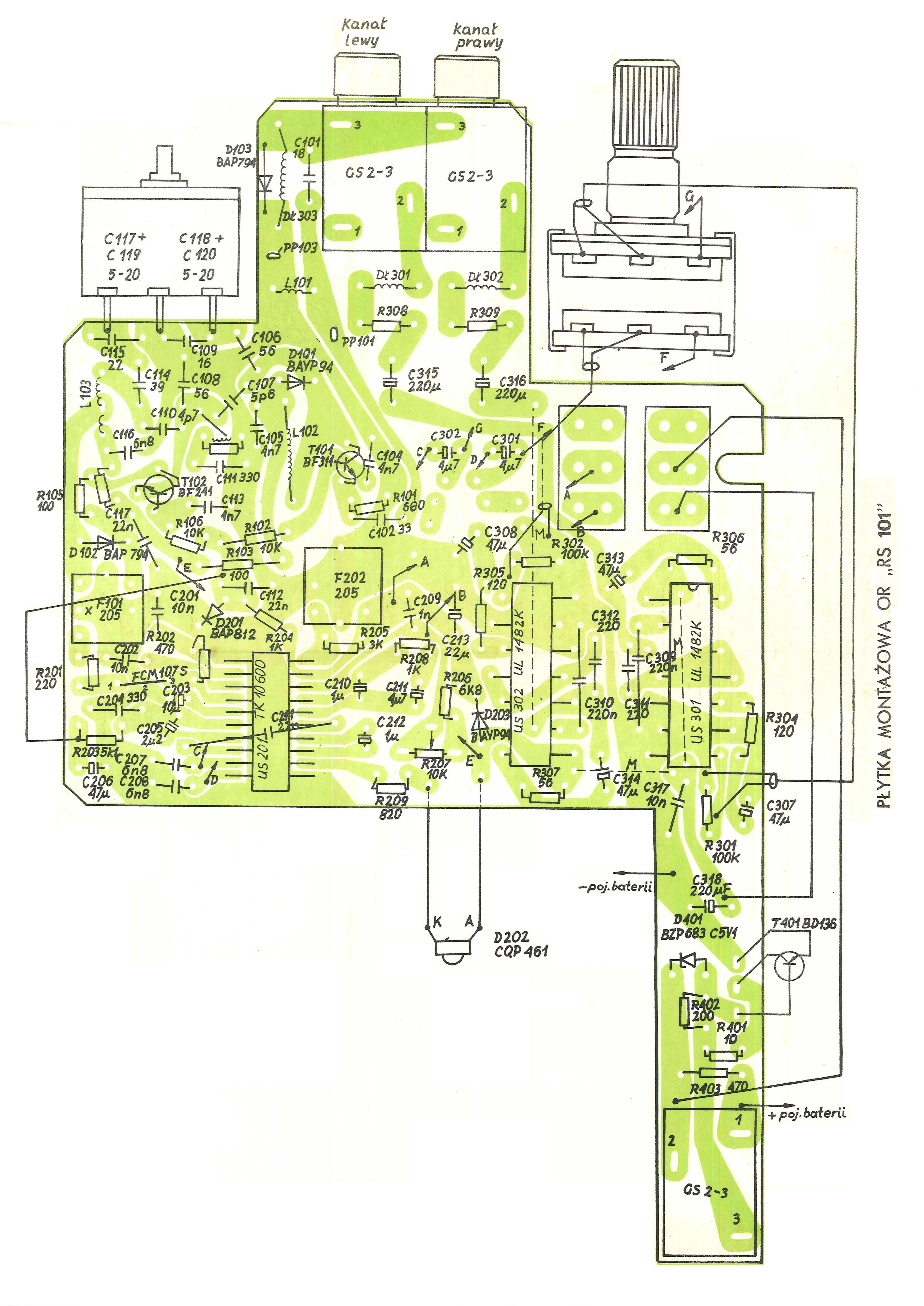 Głowica UKF zbudowana na dwóch nowoczesnych tranzystorach BF314 i BF241 steruje poprzez selekcjonowany filtr ceramiczny FCM10,7 czterostopniowy wzmacniacz p.cz., detektor kwadraturowy i dekoder stereo PLL wykorzystując importowany (japoński) układ scalony TK10600. Wzmacniacz m.cz. na pełnowymiarowych krajowych układach UL1482K.