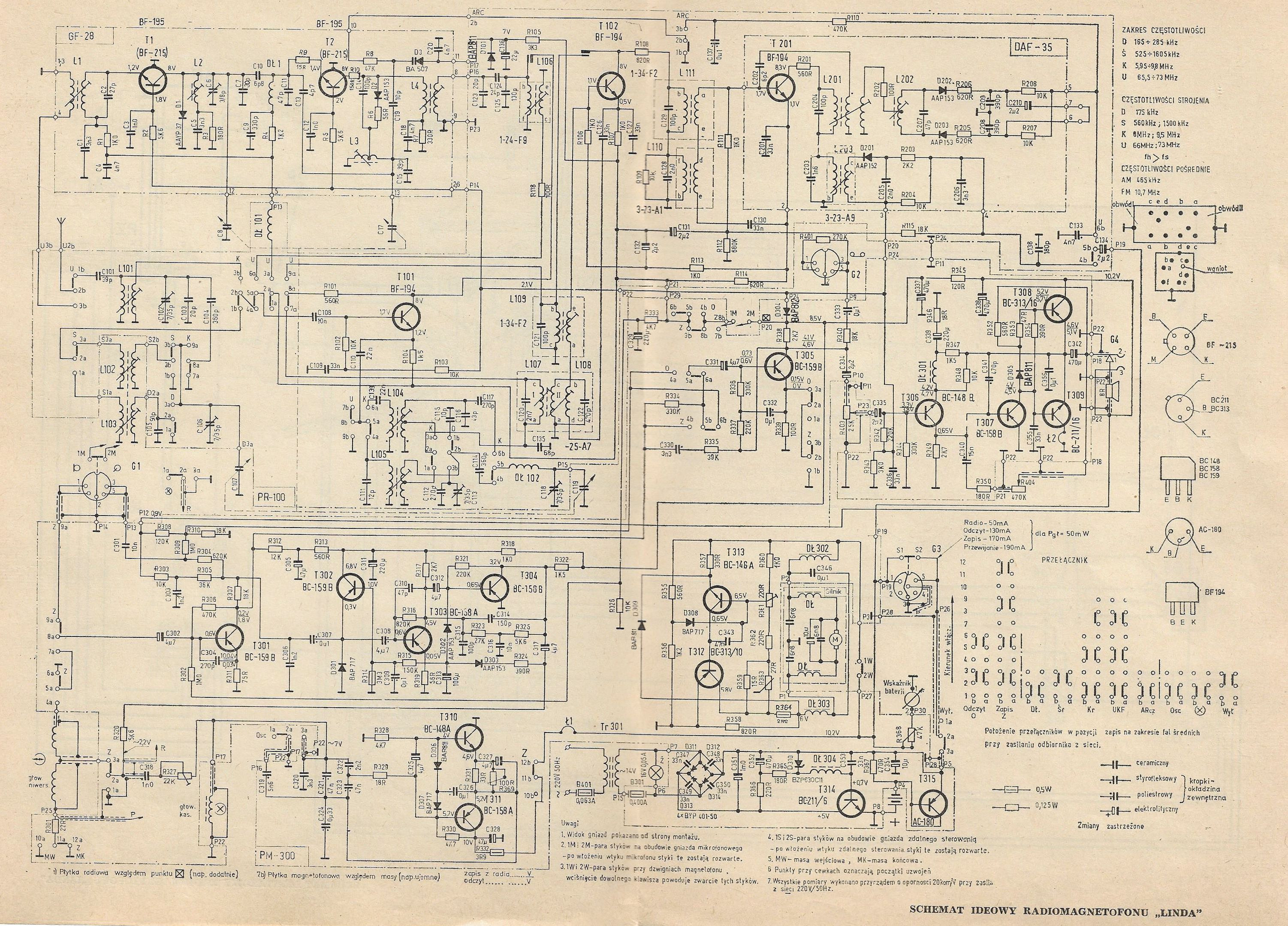 Długie: 165-285 kHz, Średnie: 525-1605 kHz, Krótkie: 5,95-9,775 MHz, UKF: 65,5-73